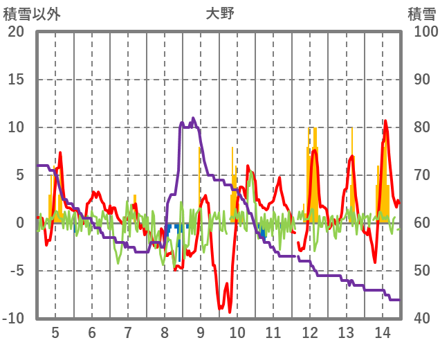 | 日 | 時 | 気温 | 降水 | 風向/風速 | 日照 | 積雪 | 降雪 |