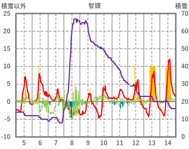 | 日 | 時 | 気温 | 降水 | 風向/風速 | 日照 | 積雪 | 降雪 |