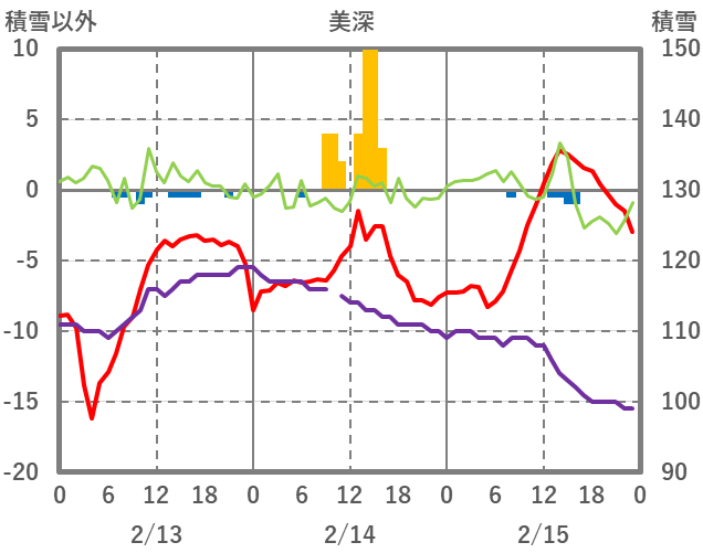 | 日 | 時 | 気温 | 降水 | 風向/風速 | 日照 | 積雪 | 降雪 |