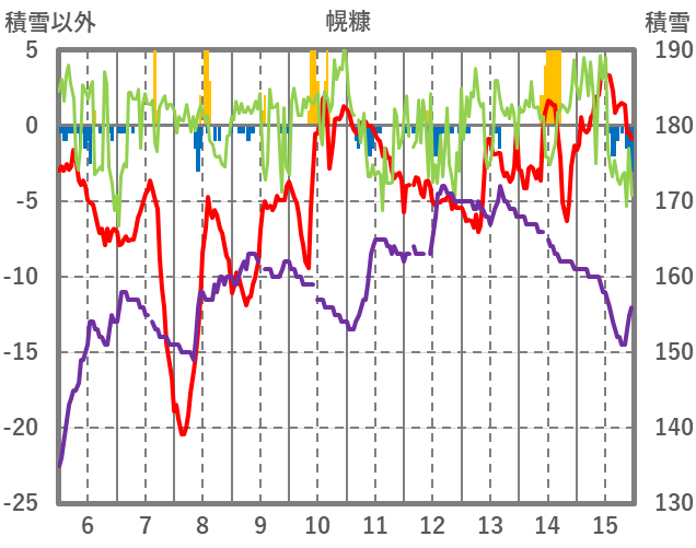 | 日 | 時 | 気温 | 降水 | 風向/風速 | 日照 | 積雪 | 降雪 |
