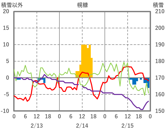 | 日 | 時 | 気温 | 降水 | 風向/風速 | 日照 | 積雪 | 降雪 |