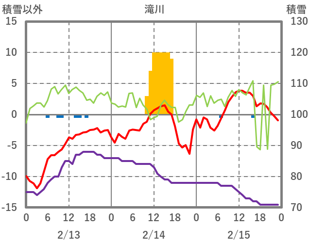 | 日 | 時 | 気温 | 降水 | 風向/風速 | 日照 | 積雪 | 降雪 |