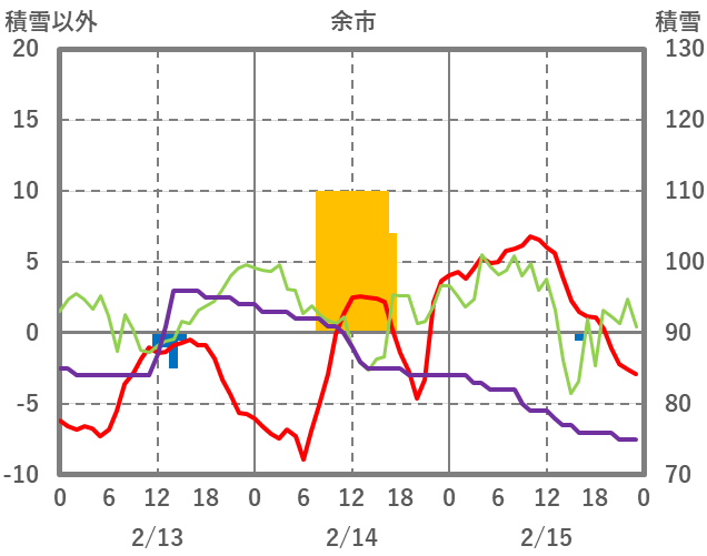 | 日 | 時 | 気温 | 降水 | 風向/風速 | 日照 | 積雪 | 降雪 |