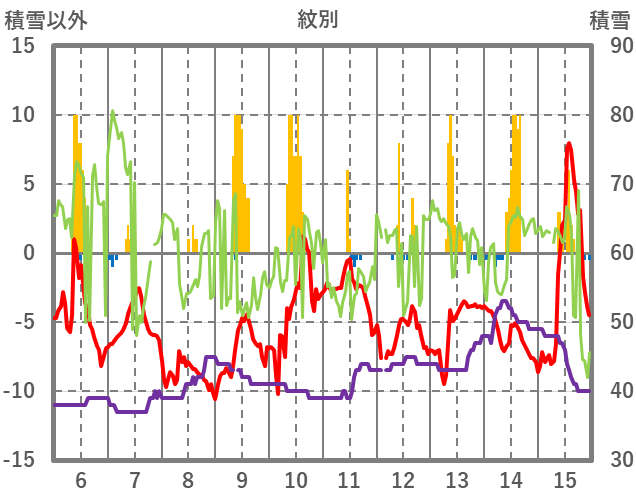 | 日 | 時 | 気温 | 降水 | 風向/風速 | 日照 | 積雪 | 降雪 |