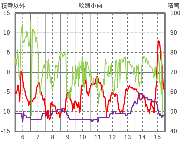 | 日 | 時 | 気温 | 降水 | 風向/風速 | 日照 | 積雪 | 降雪 |