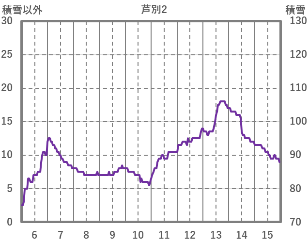 | 日 | 時 | 気温 | 降水 | 風向/風速 | 日照 | 積雪 | 降雪 |