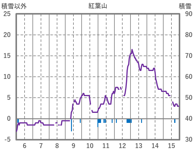 | 日 | 時 | 気温 | 降水 | 風向/風速 | 日照 | 積雪 | 降雪 |
