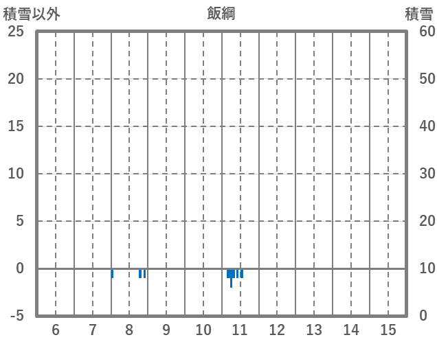 | 日 | 時 | 気温 | 降水 | 風向/風速 | 日照 | 積雪 | 降雪 |