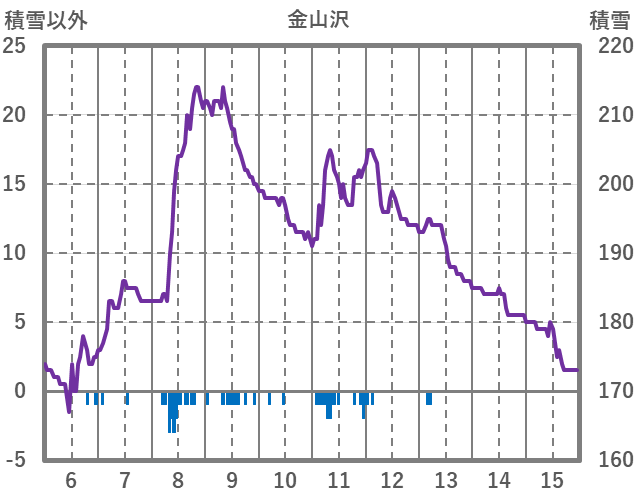 | 日 | 時 | 気温 | 降水 | 風向/風速 | 日照 | 積雪 | 降雪 |