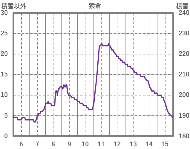 | 日 | 時 | 気温 | 降水 | 風向/風速 | 日照 | 積雪 | 降雪 |