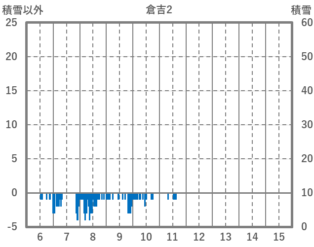 | 日 | 時 | 気温 | 降水 | 風向/風速 | 日照 | 積雪 | 降雪 |