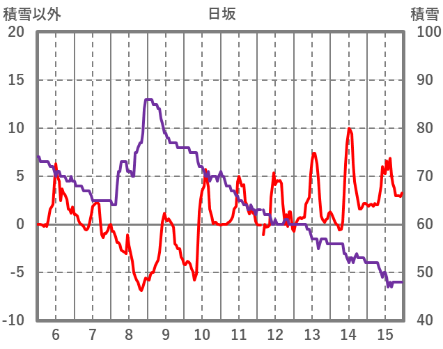 | 日 | 時 | 気温 | 降水 | 風向/風速 | 日照 | 積雪 | 降雪 |
