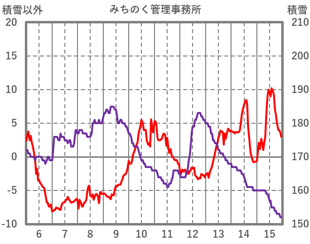 | 日 | 時 | 気温 | 降水 | 風向/風速 | 日照 | 積雪 | 降雪 |