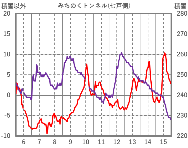 | 日 | 時 | 気温 | 降水 | 風向/風速 | 日照 | 積雪 | 降雪 |