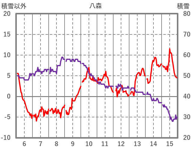 | 日 | 時 | 気温 | 降水 | 風向/風速 | 日照 | 積雪 | 降雪 |