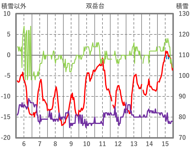 | 日 | 時 | 気温 | 降水 | 風向/風速 | 日照 | 積雪 | 降雪 |
