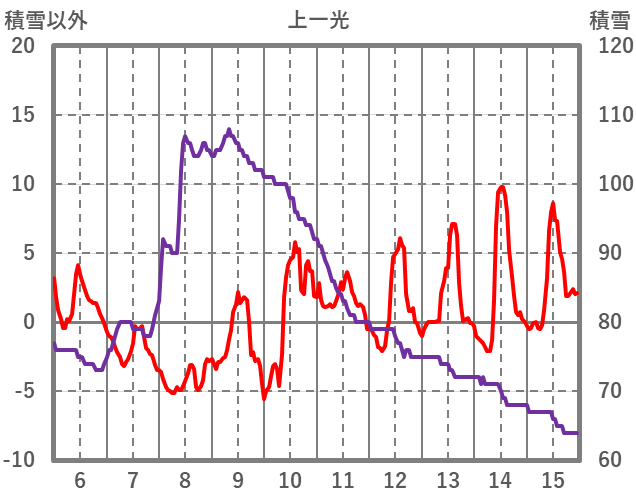 | 日 | 時 | 気温 | 降水 | 風向/風速 | 日照 | 積雪 | 降雪 |
