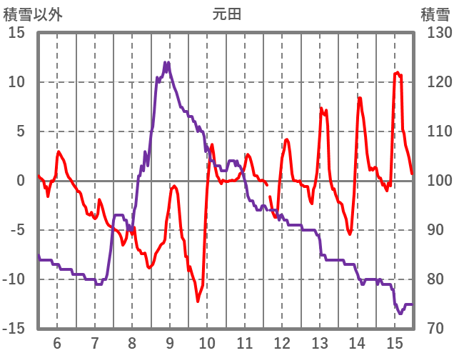 | 日 | 時 | 気温 | 降水 | 風向/風速 | 日照 | 積雪 | 降雪 |