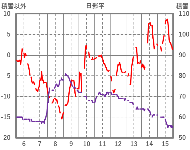 | 日 | 時 | 気温 | 降水 | 風向/風速 | 日照 | 積雪 | 降雪 |