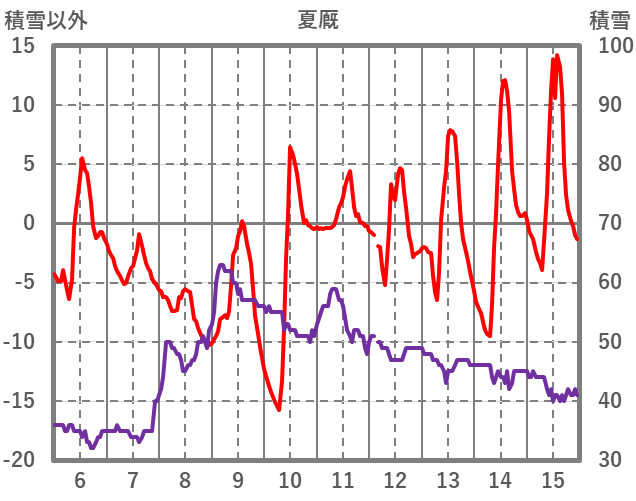 | 日 | 時 | 気温 | 降水 | 風向/風速 | 日照 | 積雪 | 降雪 |