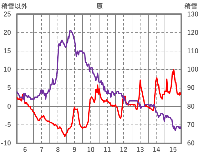 | 日 | 時 | 気温 | 降水 | 風向/風速 | 日照 | 積雪 | 降雪 |