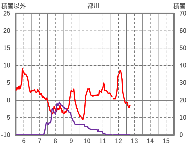| 日 | 時 | 気温 | 降水 | 風向/風速 | 日照 | 積雪 | 降雪 |