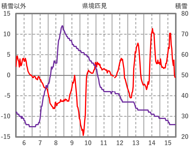 | 日 | 時 | 気温 | 降水 | 風向/風速 | 日照 | 積雪 | 降雪 |