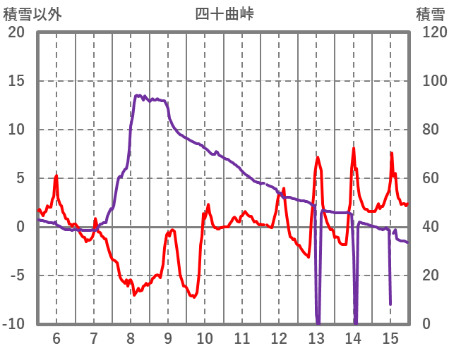 | 日 | 時 | 気温 | 降水 | 風向/風速 | 日照 | 積雪 | 降雪 |