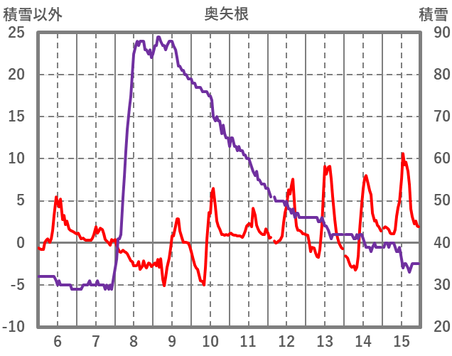 | 日 | 時 | 気温 | 降水 | 風向/風速 | 日照 | 積雪 | 降雪 |