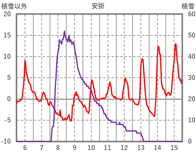 | 日 | 時 | 気温 | 降水 | 風向/風速 | 日照 | 積雪 | 降雪 |