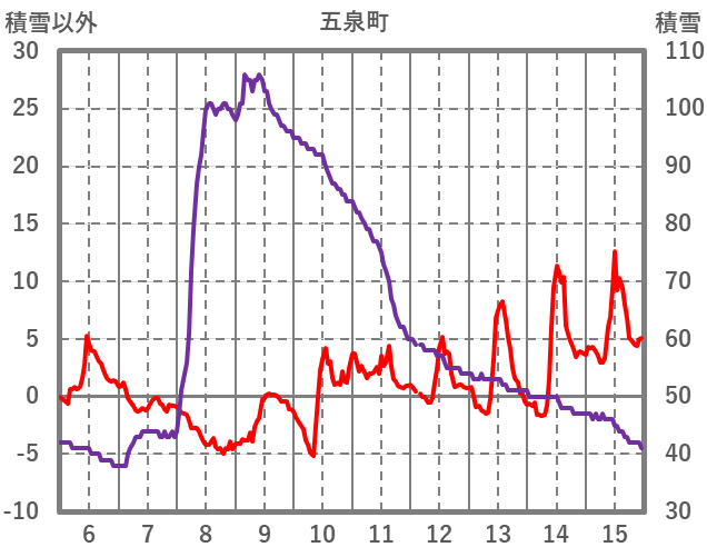 | 日 | 時 | 気温 | 降水 | 風向/風速 | 日照 | 積雪 | 降雪 |