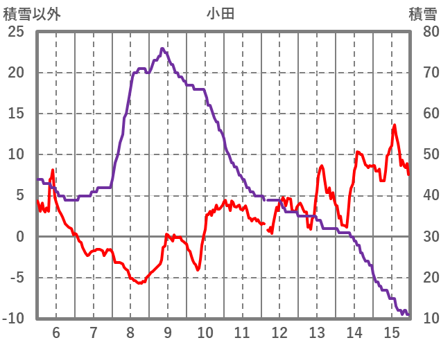| 日 | 時 | 気温 | 降水 | 風向/風速 | 日照 | 積雪 | 降雪 |