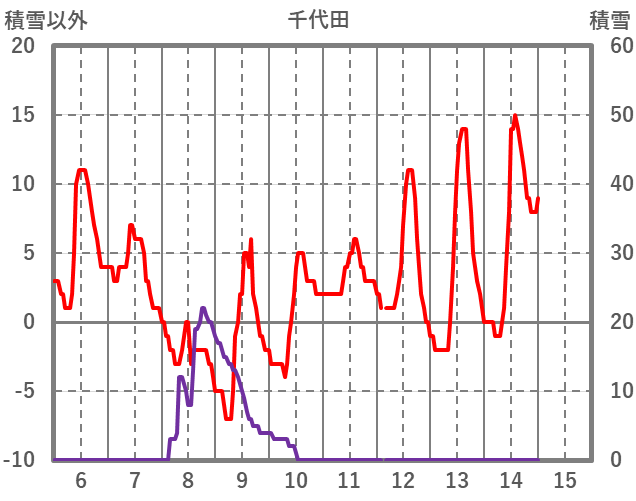 | 日 | 時 | 気温 | 降水 | 風向/風速 | 日照 | 積雪 | 降雪 |