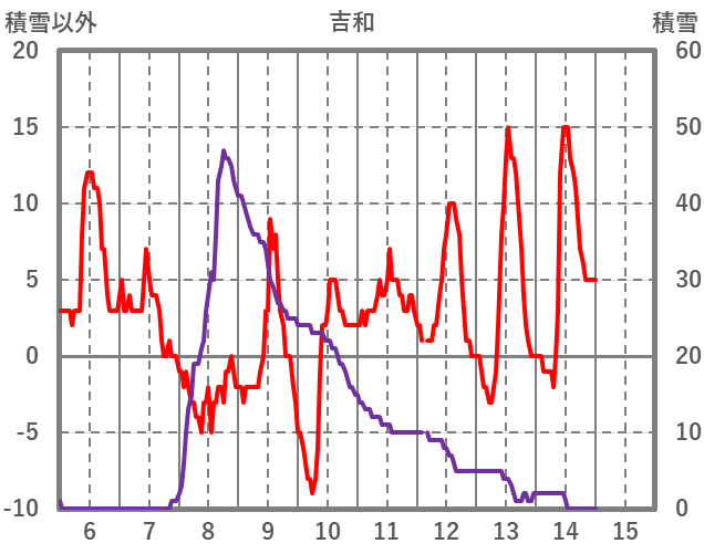 | 日 | 時 | 気温 | 降水 | 風向/風速 | 日照 | 積雪 | 降雪 |