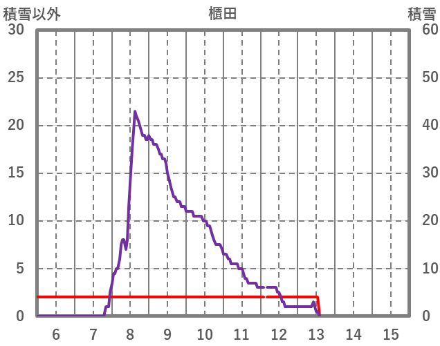 | 日 | 時 | 気温 | 降水 | 風向/風速 | 日照 | 積雪 | 降雪 |