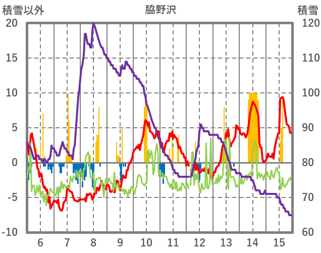 | 日 | 時 | 気温 | 降水 | 風向/風速 | 日照 | 積雪 | 降雪 |
