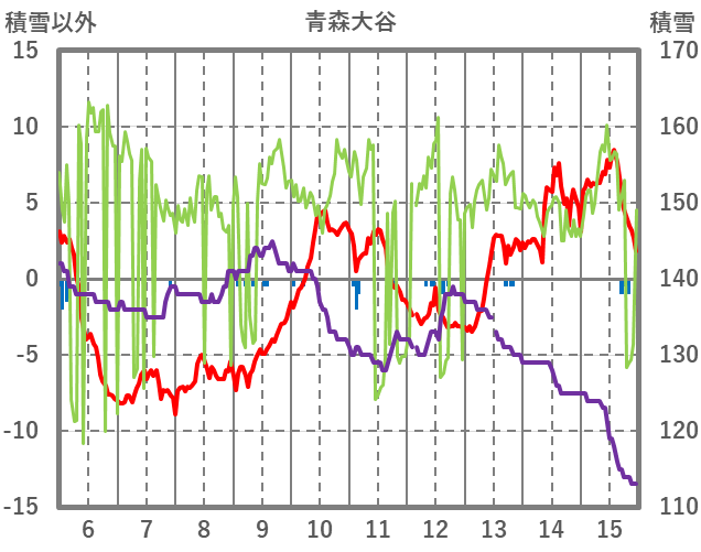 | 日 | 時 | 気温 | 降水 | 風向/風速 | 日照 | 積雪 | 降雪 |