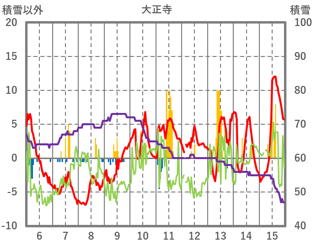 | 日 | 時 | 気温 | 降水 | 風向/風速 | 日照 | 積雪 | 降雪 |