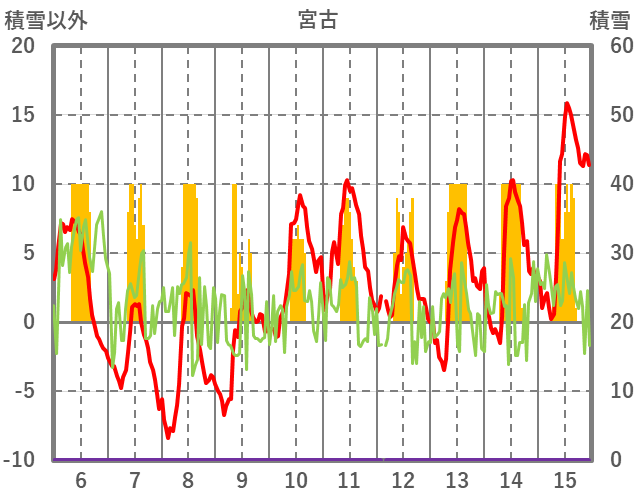 | 日 | 時 | 気温 | 降水 | 風向/風速 | 日照 | 積雪 | 降雪 |
