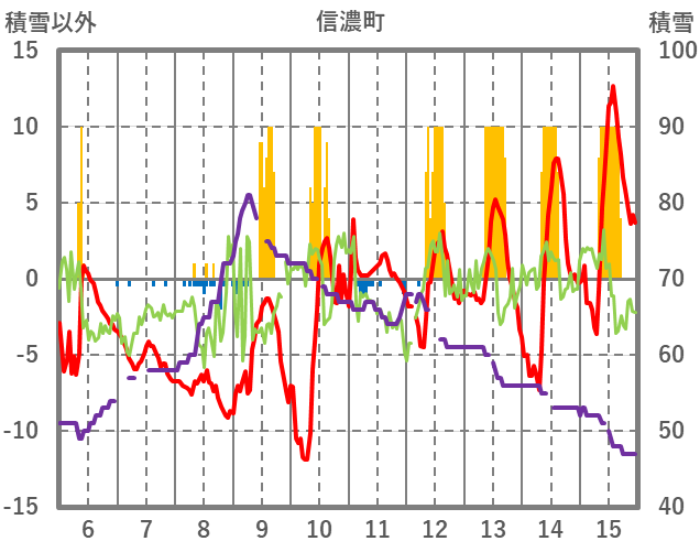 | 日 | 時 | 気温 | 降水 | 風向/風速 | 日照 | 積雪 | 降雪 |