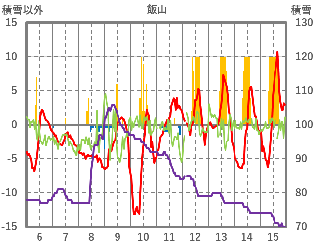 | 日 | 時 | 気温 | 降水 | 風向/風速 | 日照 | 積雪 | 降雪 |