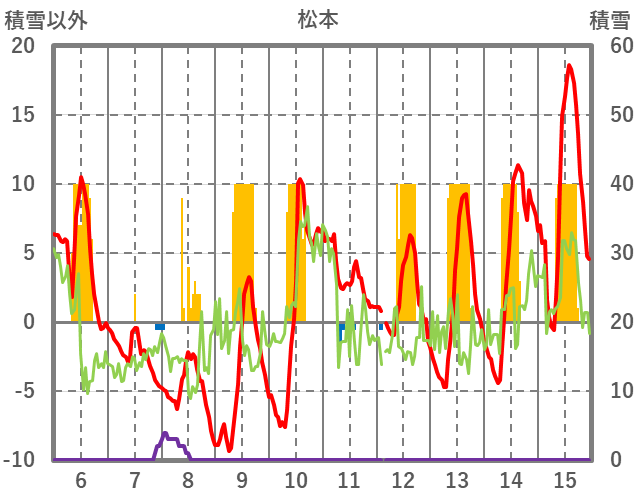 | 日 | 時 | 気温 | 降水 | 風向/風速 | 日照 | 積雪 | 降雪 |