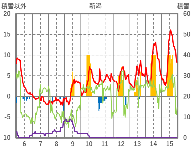 | 日 | 時 | 気温 | 降水 | 風向/風速 | 日照 | 積雪 | 降雪 |