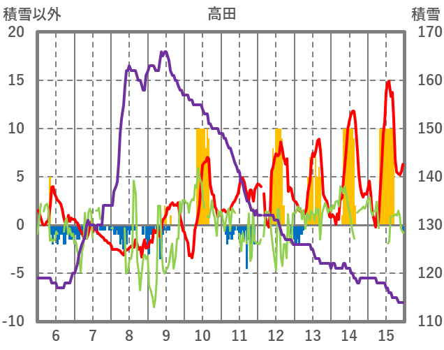 | 日 | 時 | 気温 | 降水 | 風向/風速 | 日照 | 積雪 | 降雪 |