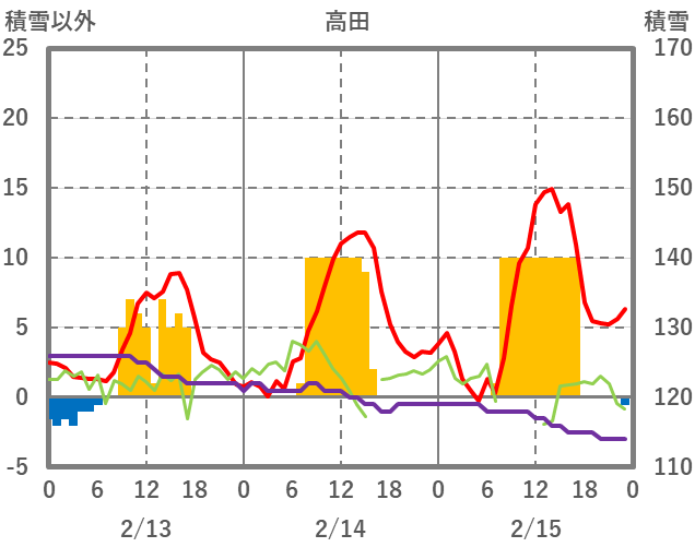 | 日 | 時 | 気温 | 降水 | 風向/風速 | 日照 | 積雪 | 降雪 |