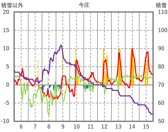 | 日 | 時 | 気温 | 降水 | 風向/風速 | 日照 | 積雪 | 降雪 |