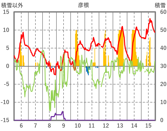 | 日 | 時 | 気温 | 降水 | 風向/風速 | 日照 | 積雪 | 降雪 |