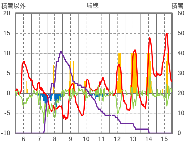 | 日 | 時 | 気温 | 降水 | 風向/風速 | 日照 | 積雪 | 降雪 |