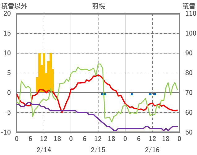 | 日 | 時 | 気温 | 降水 | 風向/風速 | 日照 | 積雪 | 降雪 |