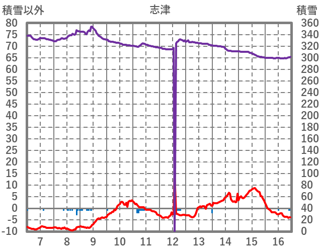 | 日 | 時 | 気温 | 降水 | 風向/風速 | 日照 | 積雪 | 降雪 |